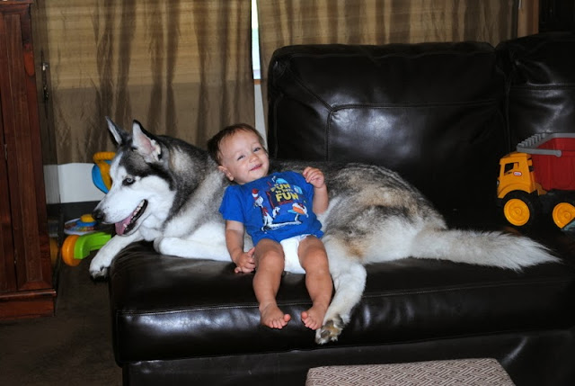 The week after finding out we were knocked up we started some serious training to get the boys ready for their new sibling. After all, they needed to be the best big brothers ever. After lots of discipline and corrections, they are Chrispy's best friends. They watch over him and protect him from everything....and he supply's them with an endless menu of food (he drops it off from his high chair).